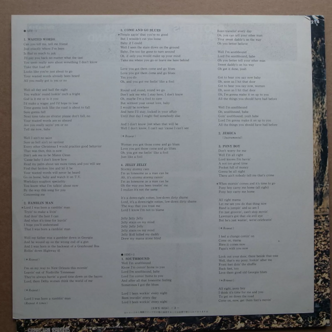 UN LP QUE ABRIO LAS PUERTAS A UN PUBLICO MASIVO QUE DESCUBRIO ESA MEZCLA TAN ORIGINAL DE BLUES CON EL COUNTRY Y EL SOUL,LAS GUITARRAS PUNTEANDO COMO DIABLOS MONTANDOSE UNA ENCIMA DE LA OTRA,DOS BATERIAS MANTENIENDO UN RITMO QUE JUNTO A UNA VOZ UNICA,RICA EN MILES DE MATICES...
