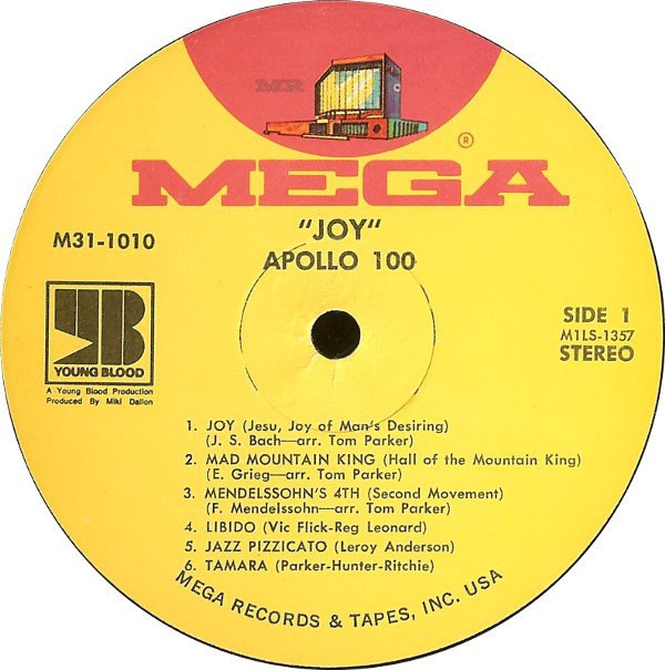Apollo 100 was a short-lived British instrumental group that had a moderate hit with the Johann Sebastian Bach-inspired single "Joy" in 1972.Arranger Tom Parker put together the band in 1972, with drummer Clem Cattini, guitarist Vic Flick, guitarist Zed Jenkins, percussionist Jim Lawless, and bassist Brian Odgers. Their first single "Joy", based on Bach's "Jesu, Joy of Man's Desiring", rose to number 6 on the pop singles chart in the U.S., giving them a hit. None of their subsequent efforts were as successful.They broke up in 1973."Joy" has subsequently been featured in the soundtracks of One Day in September, Boogie Nights, and The 40-Year-Old Virgin.
