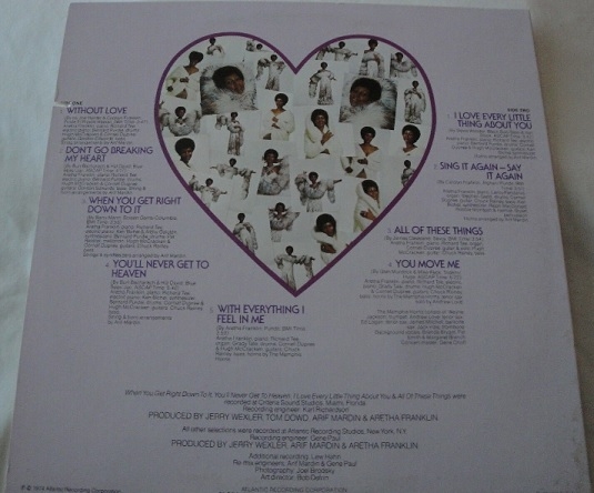 aretha En todas las canciones toca el piano y Dos de los temas están compuesto por ella y su hermana Carolyn Franklin, "Without Love" y "Sing It Again - Say It Again". su hermana es otra de la grandes desconocidas del soul que adoramos aqui..