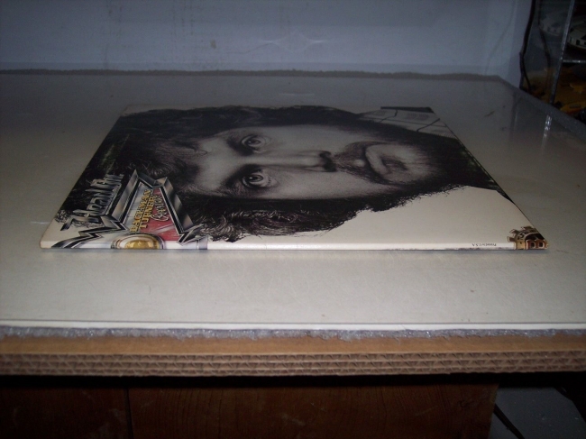 lujosa y preciosa completa 1ª edicion org usa con la curiosa y GIGANTE carpeta con la posiblidad de hacerse DESPEGABLE, entonces se trasforma en un poster gigante con las 4 cabezas de cada uno de los miembros de la banda..!!! tambien contiene el grueso encarte interior a color.