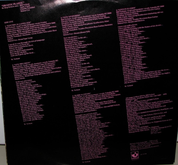 Bill Nelson: guitarras eléctricas, acústicas y de 12 cuerdas, voz principal, mandolina, sintetizador de guitarra, piano, percusión