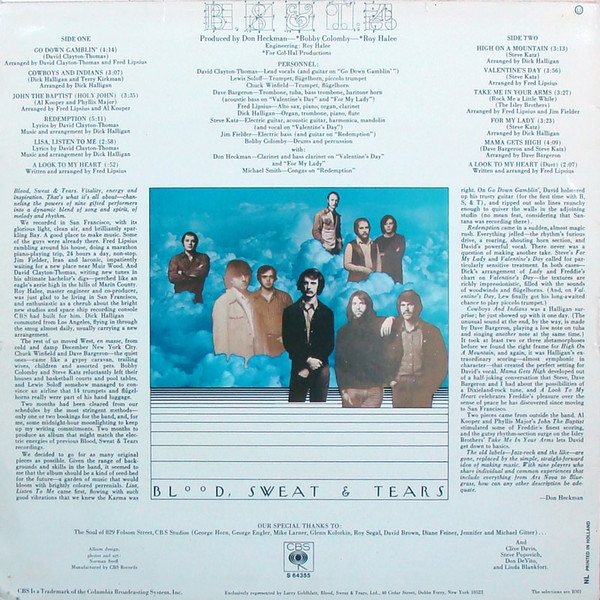 el albun es toda un amaravilla con la voz de uno de los mejores vocalistas de todos los tiempos, el canadiense David Clayton-Thomas, escucha elm tema que abre el lp..Go down gamblìn..bestial