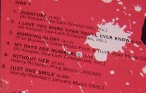 este albun es diferente al resto que la banda realizo despues, al kooper abandono la formacion despues de este albun...solo la escucha del temazo..i love you more than you`ll ever know mereceria adquirirlo..pero es que el albun tema tras temas va soprendiendo por que cada tema esta trabajado a fondo ..y de que modo..los hammond, los solos de guitarra, la voz bellisima de steve katz , escucha el tema..morning glory..y el que el sigue..my days asre numbered..que es uno de los que nunca me puedo quitar de mi cabeza..que pedazo de tema..o el otro clasico de harry nilson without her y como no un tema del gran randy newman..y tambien de goffin-king..hay para todos y mucho mas...