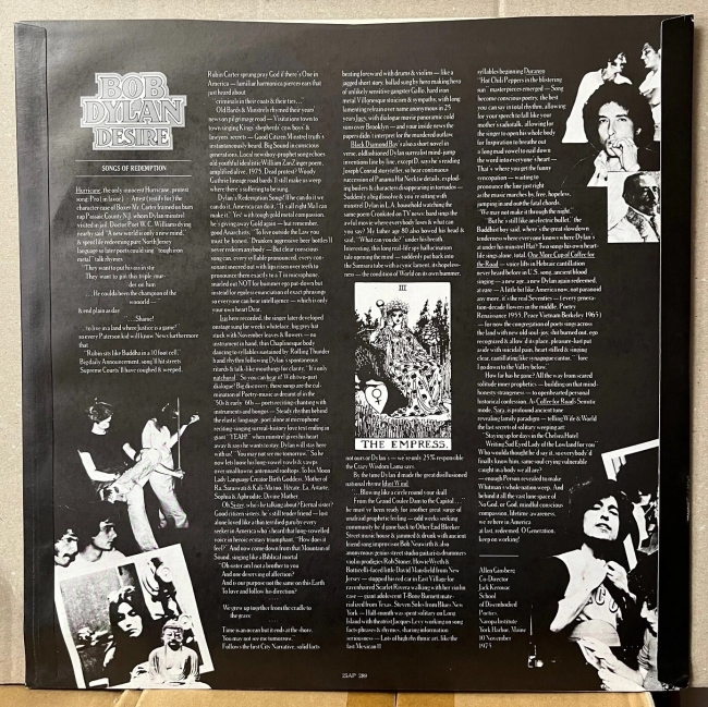 Su vertiente más zíngara es la recogida en “Desire” (Hard Rain aparte). Para muchos es simplemente el álbum de ‘Hurricane’, para mí significa mi primer encuentro con Bob, imaginen. “Desire” es la versión en disco de la Rolling Thunder Revue, esa caravana de personajes de diverso pelaje con la que Bob se recorrió todo Estados Unidos. Marcado por el violín de Scarlett Rivera contiene dos de mis canciones “menores” favoritas de toda su carrera: ‘One More cup of Coffee’ y ‘Romance in Durango’, con unos eróticos coros de Emmylou Harris en castellano.