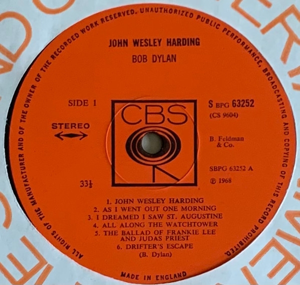 Toda una obra maestra de la literatura de intriga en su versión más rural es este "John Wesley Harding" (forajido de leyenda inventado por el propio Dylan, un Robin Hood a la americana). Mientras tanto, todos los demás andaban versioneando sus canciones del sótano. O tomando tripis y escribiendo sinfonías a mayor gloria de sus propios delirios.