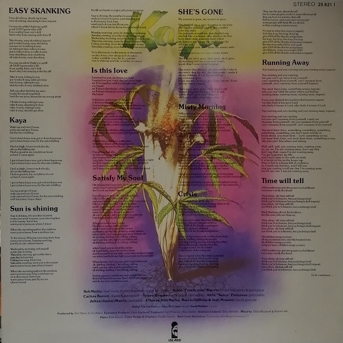 El álbum tenía un sonido muy relajante, carente de la agresividad lírica y musical de los Wailers. Recibieron críticas por la 'suavidad' del álbum como resultado del sonido general del álbum, así como la temática principal del disco, que giraba en torno al amor y la marihuana ("discúlpeme mientras me fumo mi porro", reza una de las letras).1 "Kaya" es una palabra del dialecto jamaiquino y significa algo así como "hierba" o "cáñamo".