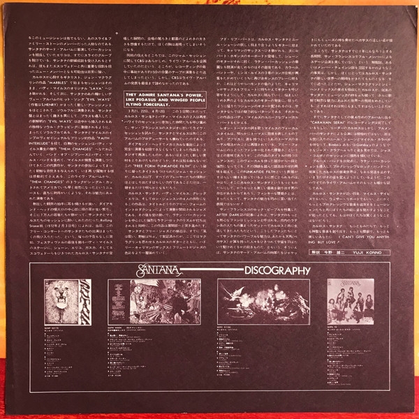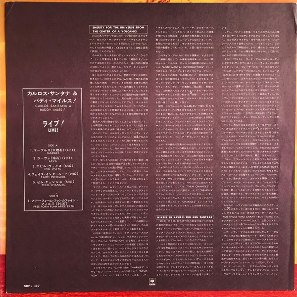 sil olvidadar comentaros que el tema final es apocalictico con todos tocando como diablos..improvisando..con solos memorables..es un documento unico !!!.. hammond b3, vientos, percusiones..todos como poseidos la guitarra de carlos en su mejor epoca y la voz impagable del gran buddy miles que es pura emocion...