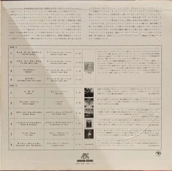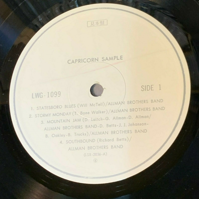 ULTRA RARO PROMOCIONAL JAPONÉS DE 1975 SOLO "CAPRICORN SAMPLER" CON VARIOS ARTISTAS COMENZANDO CON THE ALLMAN BROTHERS BAND, GREGG ALLMAN, RICHARD BETTS, DUANE ALLMAN, COWBOY, WET WILLIE, ELVIN BISHOP Y MÁS.