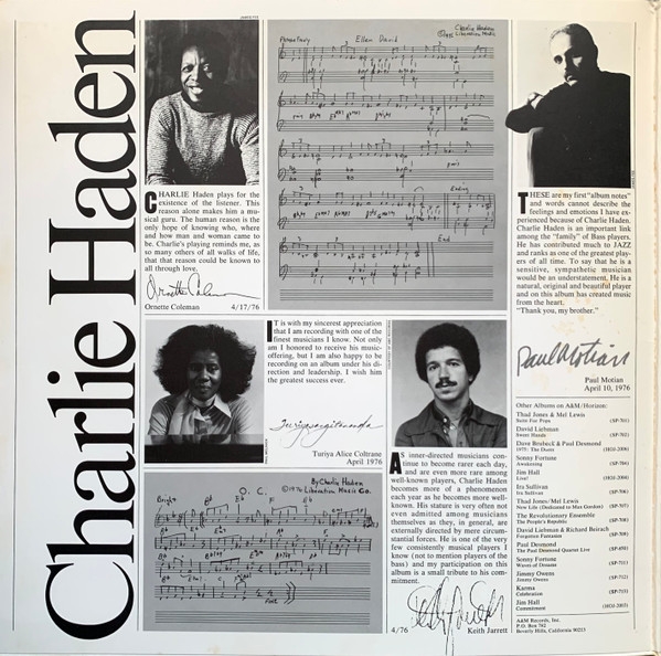 He tenido la suerte de verle en concierto en unas cuantas ocasiones y siempre me parecio que era un musico increible, personal sonido y siempre con un propio idioma..que en este albun podras comprobar en esta sesion grabada en 1976 donde junto a otras verdaderas leyendas del jazz como jarrett, coleman, motian, y la viuda de joh coltrane, alice coltrane que os recomiendo por supuesto