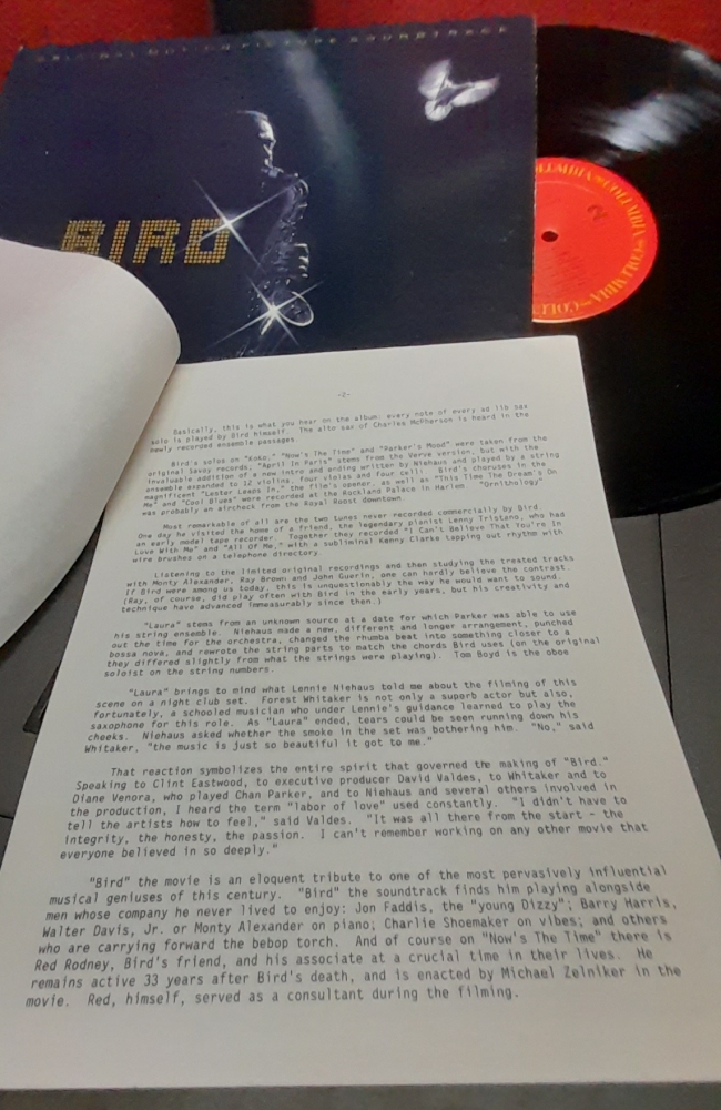 A través del milagro de la tecnología moderna e incontables horas de trabajo en el estudio, el productor Lennie Niehaus combina solos originales del titán de saxo alto Charlie "Bird" Parker con el acompañamiento de jugadores modernos. Los sidemen que juegan con la legenda lejana son los bajistas Ron Carter y Ray Brown , el baterista John Guerin y el trompetista Jon Faddis . Es un placer escuchar la brillantez de Bird en un estéreo cristalino,