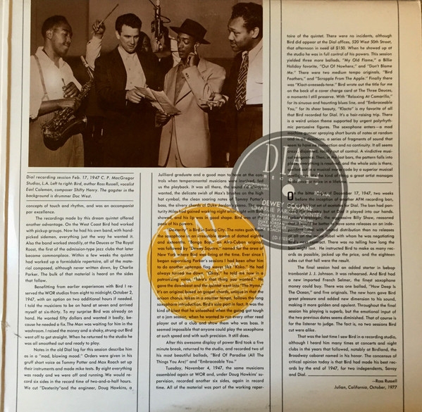 coleccion con grabaciones del año 1947 (para Savoy y Dial) con Max Roach, Tommy Potter, Duke Jordan, Arvin Garrison, Vic MacMillan, Roy Porter y otros