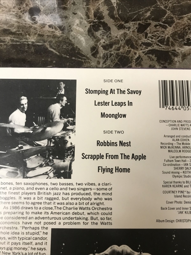 Charlie Watts, el baterista de los Rolling Stones desde hace mucho tiempo, tiene sus raíces en el jazz y siempre amó la música. En 1986 financió una gira mundial de una orquesta de gran tamaño compuesta por siete trompetistas, cuatro trombones, tres contralistas, seis tenores, un baritonista, un clarinetista, dos vibrafonistas, piano, dos bajos, violonchelo y tres bateristas, incluido el líder.