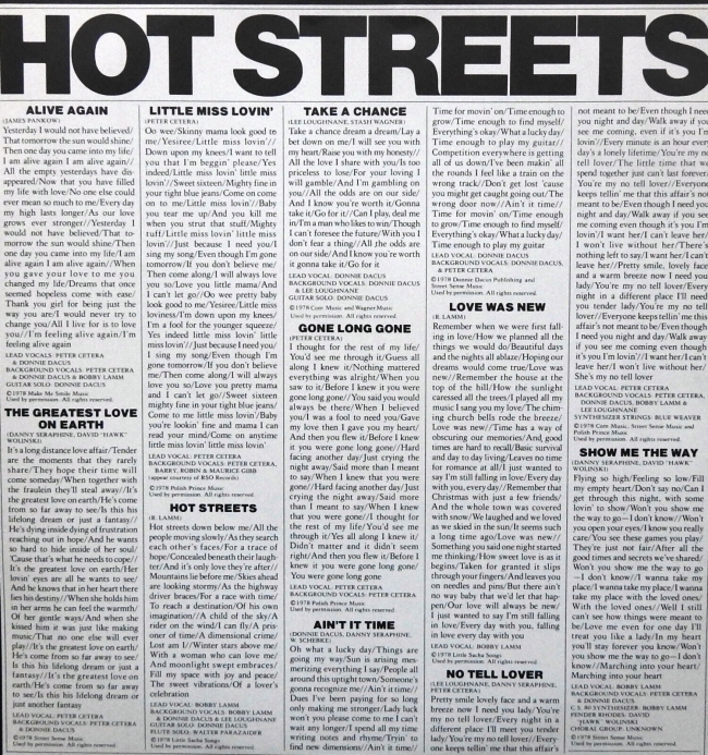 Peter Cetera – bass, lead and backing vocals