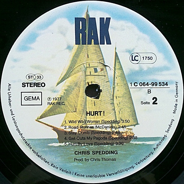 Chris Spedding ha tenido una carrera fascinante durante (casi) las últimas cuatro décadas. Un guitarrista increíblemente versátil y de primera categoría, Spedding tiene un currículum formidable como músico de sesión, habiendo aparecido literalmente en cientos de sesiones, que van desde su trabajo con Brian Ferry y John Cale hasta su aparición a mediados de los setenta como uno de los Wombles! Después de haber formado parte de la excelente pero criminalmente ignorada banda británica The Sharks a principios de los setenta, Spedding lanzó una buena trilogía de álbumes en solitario a mediados y finales de los setenta: "Chris Spedding", "Hurt" y "Guitar Graffiti". "Hurt" es la mejor de todas.