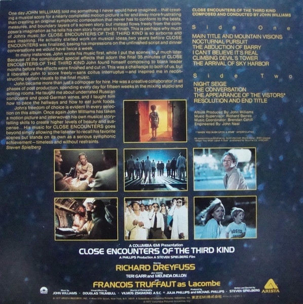 compuesta y dirigida por John Williams . El álbum de la banda sonora se lanzó en un álbum de vinilo por Arista Records en 1977, con un tiempo total de ejecución de 41 minutos