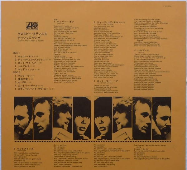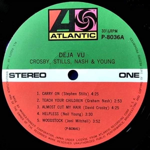 "Déjà vu" (Atlantic). Un año después de la grabación de su primer disco, Crosby, Stills and Nash incorporaban a Neil Young como compositor, guitarrista y cantante del supergrupo en aquel tiempo triunfador con sus canciones entre acústicas y eléctricas. Con el canadiense, la banda adquiría un tono más roquero como demostraba en "Deja vu", el mejor elepé grabado en estudio por esta formación afincada en California. De nuevo, como había pasado con su anterior disco grande, casi todas las canciones son de los mencionados Crosby, Stills, Nash and Young, salvo el himno generacional "Woodstock", compuesto por la canadiense Joni Mitchell, habitual también, tanto como compositora y cantante como pintora, en los álbumes de los cuatro. Rock, country-rock y algo de psicodelia constituyen los estilos más apreciados en el disco, donde quedaron registradas importantes piezas, como "Carry On", "Déjà vu", "Amost Cut My Hair", "Helpless" o "Country Girl". Creatividad desbordante y compenetración entre los músicos participantes ayudaron también situar a este disco entre los mejores de comienzos de los setenta. La portada, diseñada por Gary Burden, recoge una fotografía de tono sepia y ambientación "western" del inconfundible Henry Diltz.