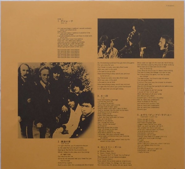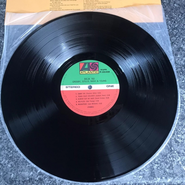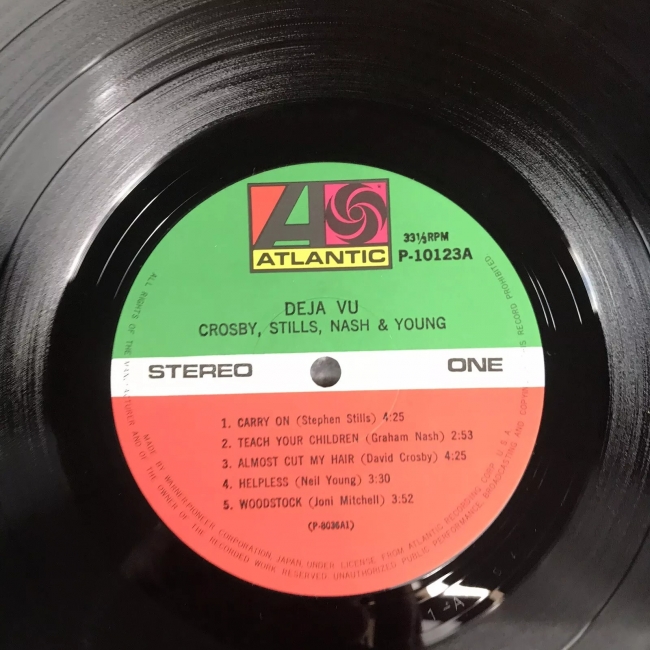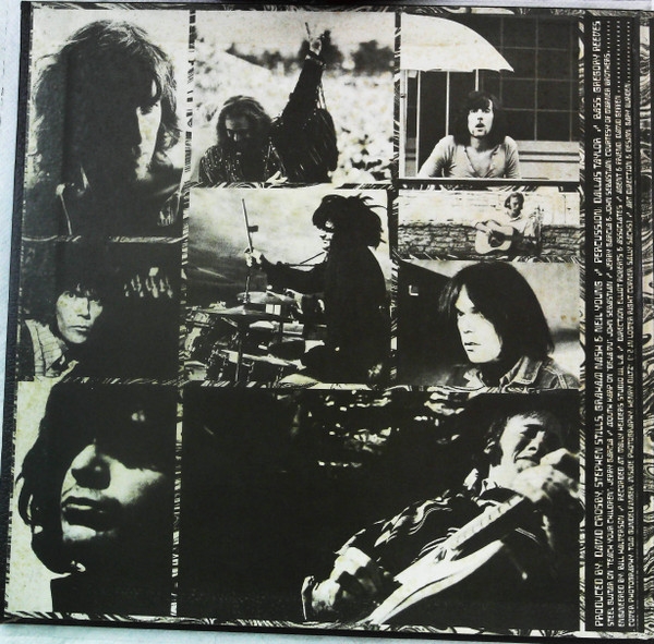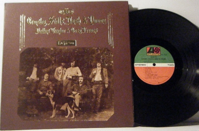 "Déjà vu" (Atlantic). Un año después de la grabación de su primer disco, Crosby, Stills and Nash incorporaban a Neil Young como compositor, guitarrista y cantante del supergrupo en aquel tiempo triunfador con sus canciones entre acústicas y eléctricas. Con el canadiense, la banda adquiría un tono más roquero como demostraba en "Deja vu", el mejor elepé grabado en estudio por esta formación afincada en California. De nuevo, como había pasado con su anterior disco grande, casi todas las canciones son de los mencionados Crosby, Stills, Nash and Young, salvo el himno generacional "Woodstock", compuesto por la canadiense Joni Mitchell, habitual también, tanto como compositora y cantante como pintora, en los álbumes de los cuatro. Rock, country-rock y algo de psicodelia constituyen los estilos más apreciados en el disco, donde quedaron registradas importantes piezas, como "Carry On", "Déjà vu", "Amost Cut My Hair", "Helpless" o "Country Girl". Creatividad desbordante y compenetración entre los músicos participantes ayudaron también situar a este disco entre los mejores de comienzos de los setenta. La portada, diseñada por Gary Burden, recoge una fotografía de tono sepia y ambientación "western" del inconfundible Henry Diltz.
