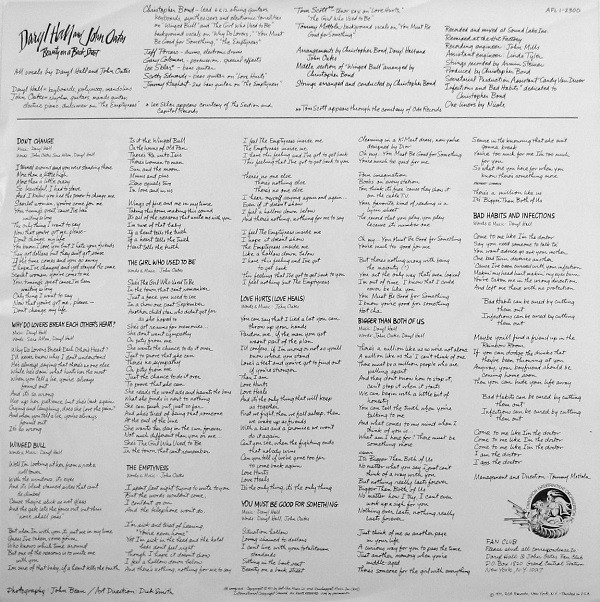 Daryl Hall - lead vocals (1, 2, 3, 6, 7, 8), backing vocals, keyboards, Polymoog synthesizer, guitars, mandolins