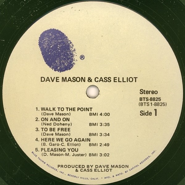 El disco que grabó Dave Mason con la famosa Mama Cass en 1971, una buenisima combinación de un fino guitarrista y compositor con una de las voces más exquisitas y agradables de aquellos años 60/70. Como describe All-Music es uno de los más finos trabajos en solitario realizados por Mason. Diez canciones magnificas de las cuales 7 son de Dave Mason, y atención al tema final Glittering Façade, donde Dave se sale con la guitarra acústica. Es un disco con clase y mucha calidad y por supuesto muy difícil de encontrar