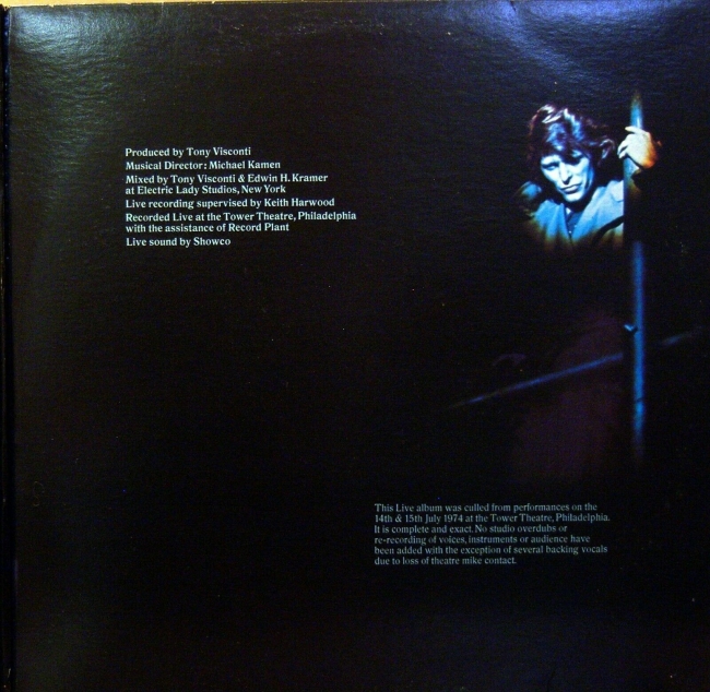 Notes: This Live album was culled from performances on the 14th & 15th July 1974 at the Tower Theatre, Philadelphia. It is complete and exact. No studio overdubs or re-recording of voices, instruments or audience have been added with the exception of several backing vocals due to loss of theatre mike contact.