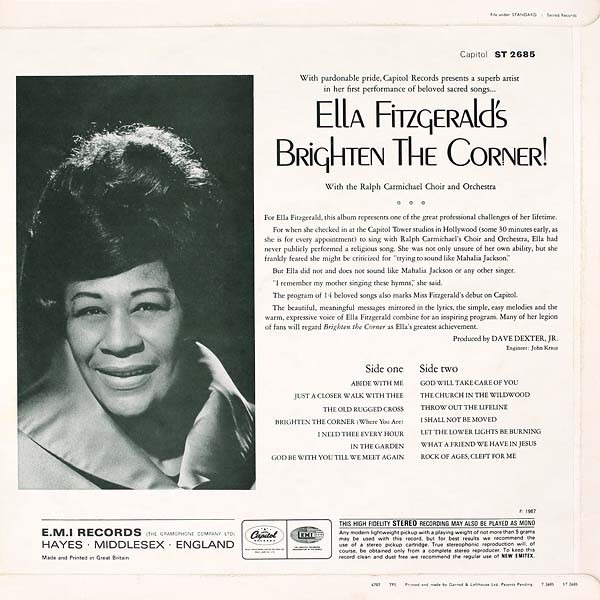 Este álbum fue el primero de Ella desde que dejó el sello Verve, que la había visto producir su obra más aclamada. Supuso un cambio radical de rumbo para Fitzgerald, ya que en Brighten the Corner Ella refleja su propia espiritualidad y rechazando los estándares del Great American Songbook en los que se había centrado previamente.