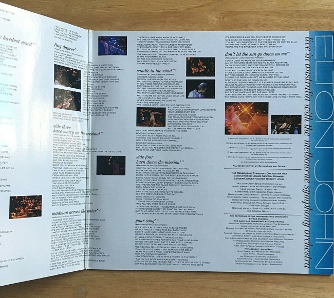 El álbum incluye la mayoría de las canciones grabadas en la segunda mitad del show, excepto " Saturday Night's Alright for Fighting ", "Carla / Etude", "Cold as Christmas (En la mitad del año)" y "Slow Rivers", que fue cantado solo por John (John tocó "Slow Rivers" con Cliff Richard en Leather Jackets ).
