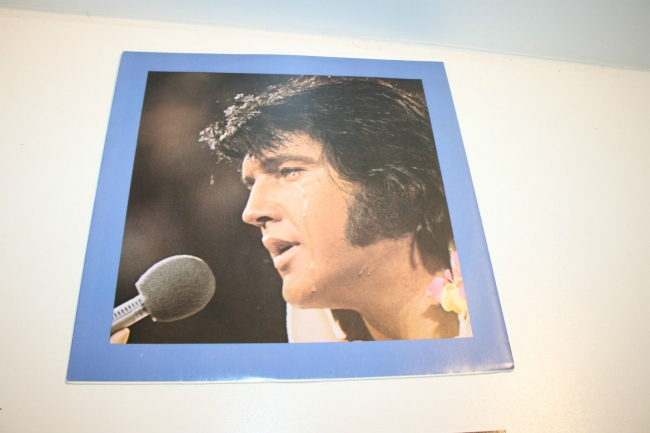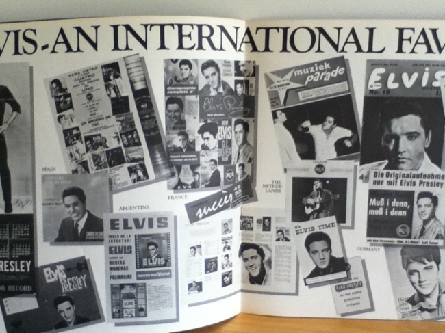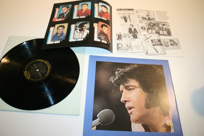 GRUESA CARPETA TEXTURADA CON CURIOSO TROQUELADO CIRCULAR QUE DEJA VER GRAN FOTO DE ELVIS QUE PERTENECE AL LIBRETO INTERIOR