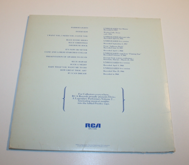 Elvis: A Legendary Performer Volume 2 es un álbum recopilatorio del músico estadounidense Elvis Presley, publicado por la compañía discográfica RCA Victor en enero de 1976. Al igual que el primer volumen de la serie, publicado en 1974, la colección fue una mezcla de grabaciones previamente publicadas y temas inéditos hasta entonces. En este volumen, RCA Records publicó por primera vez «Harbor Ligts», una balada que Presley grabó durante su primera sesión con Sun Records en julio de 1954. Esto marcó la primera vez desde el álbum Elvis for Everyone!, en el que se incluyó la grabación «Tomorrow Night» de Sun Records, que RCA publicó material de los archivos de Sun. Otras canciones previamente inéditas incluyeron una toma alternativa de «I Want You, I Need You, I Love You», varias actuaciones no publicadas en Elvis (NBC-TV Special), la canción «A Cane and a High Starched Collar» de la banda sonora de la película Flaming Star, y una toma alternativa de su grabación de 1960 «Such a Night». El álbum fue certificado como doble disco de platino por la RIAA en julio de 1999.