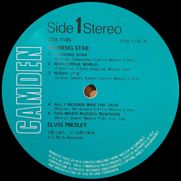 EX CONDICION PARA ESTA RARA EDICION UK ,EDITADO POR EL SELLO RCA CAMDEN LABEL COLOR AZUL