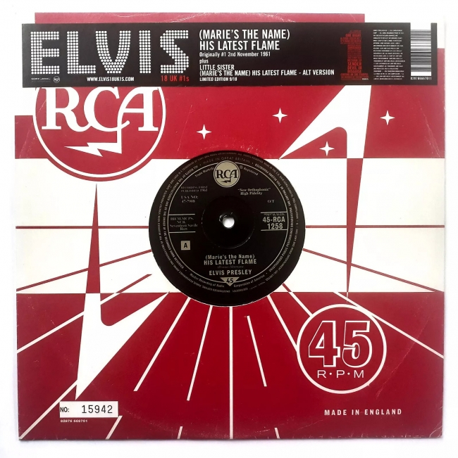 Elvis Presley His Latest Flame b/w " Little Sister (Alternate Version) Numbered 10 Inch Vinyl Record 45 RPM {Limited Collectors Edition" U.K.