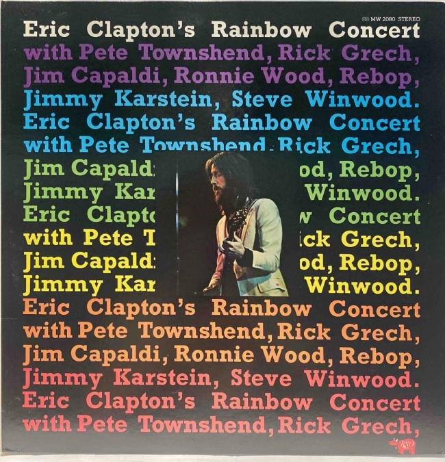 Eric Clapton's Rainbow Concert es un álbum en directo del músico británico Eric Clapton, publicado por la compañía discográfica RSO Records en septiembre de 1973. Fue grabado en el Rainbow Theatre de Londres el 13 de enero de 1973 y organizado por Pete Townshend, guitarrista de The Who, para marcar el regreso de Clapton a los escenarios tras dos años de inactividad musical debido a su drogadicción.3 Junto con Townshend, Clapton tocó con Steve Winwood, Ronnie Wood y Jim Capaldi. Un año después de los conciertos en el Rainbow, Clapton consiguió rehabilitarse de su dependencia a la heroína y grabó 461 Ocean Boulevard.