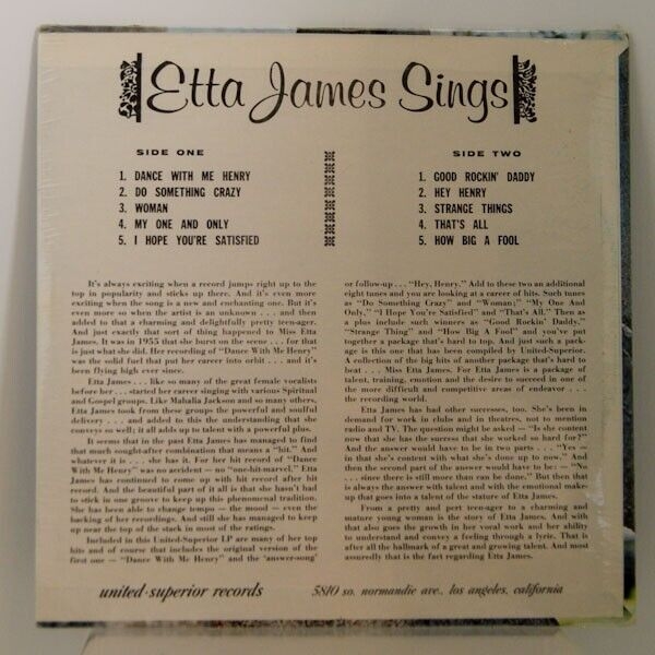 ¡Precioso disco estéreo edición estadounidense del '70 (Origi es '61 Crowns "Miss Etta James")!