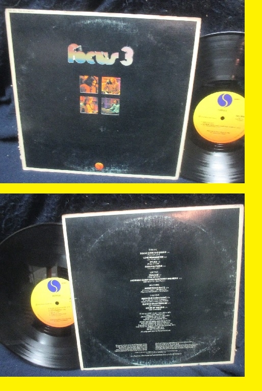 BUEN PRECIO / DOBLE LP, ORIG. USA CON EL TROQUELADO ORIGINAL EN LA CARPETA PARA LA PALABRA FOCUS 3 QUE ADEMAS CONTIENE UNA HOLOGRAFIA Y TAMBIEN TROQUELADO PARA LAS 4 FOTOGRAFIAS DE CADA MIEMBRO.,