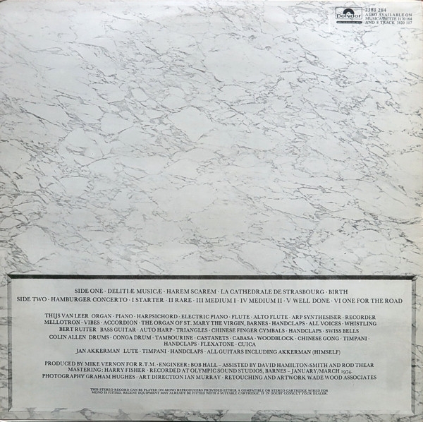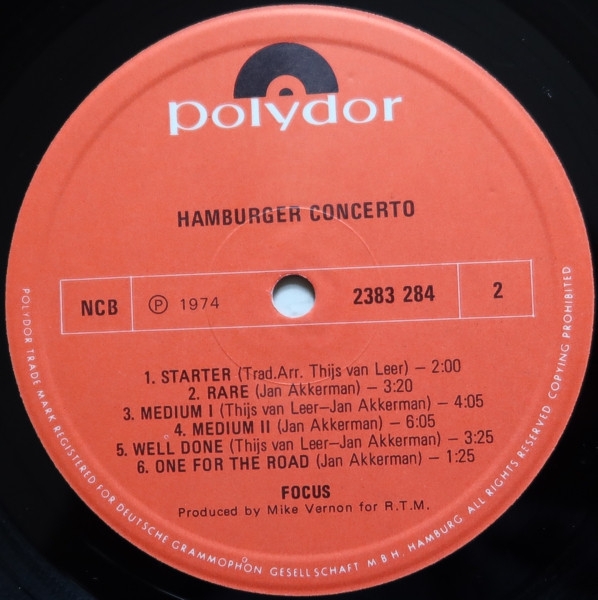 "Hamburger Concerto" - 20:18 "Starter" (Thijs van Leer) "Rare" (Jan Akkerman) "Medium I" (Thijs van Leer) "Medium II" (Jan Akkerman) "Well Done" (Thijs van Leer) "One for the Road" (Jan Akkerman)