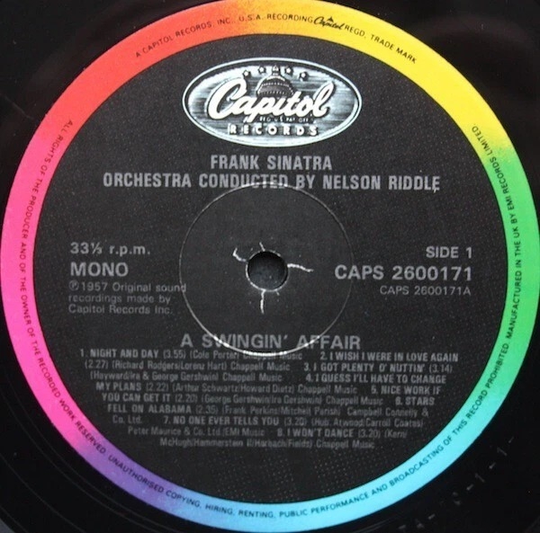 Tenemos el clásico arreglo de Riddle de "Night and Day" para comenzar el álbum, una de las canciones más famosas de Sinatra y la increíble "I Wish I Were In Love Again" es una de mis canciones favoritas de todos los tiempos de Frank y debería haber sido interpretada más por él. "A Swingin affair" definitivamente estaría en mi top 5 de álbumes de Sinatra de todos los tiempos