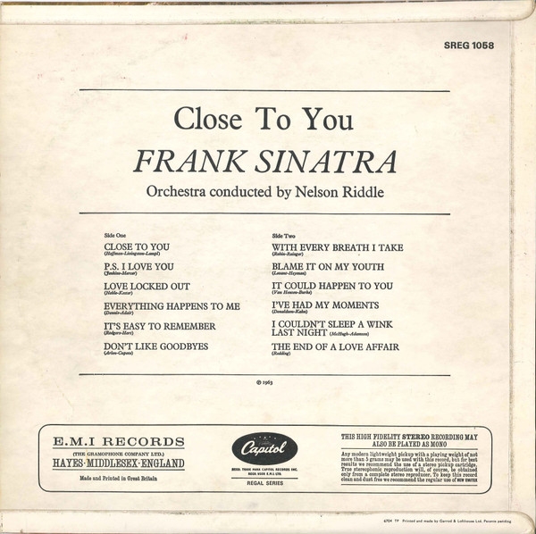 1963 Capitol Records SREG 1058 Made in Gt. Britain