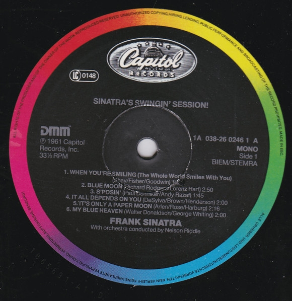 MIRA EL REPERTORIO Y COMO EL LLEVA A SU TERRENO CADA TEMA QUE EL ARREMETE.. TEMAS QUE DEMUESTRAN QUE SINATRA FUE EL MEJOR VOCALISTA DE TODOS LOS TIEMPOS CON UNA MODULACION DE SU VOZ PERFECTA, ..TEMAS COMO; BLUE MOON, "It's Only a Paper Moon" ETC...