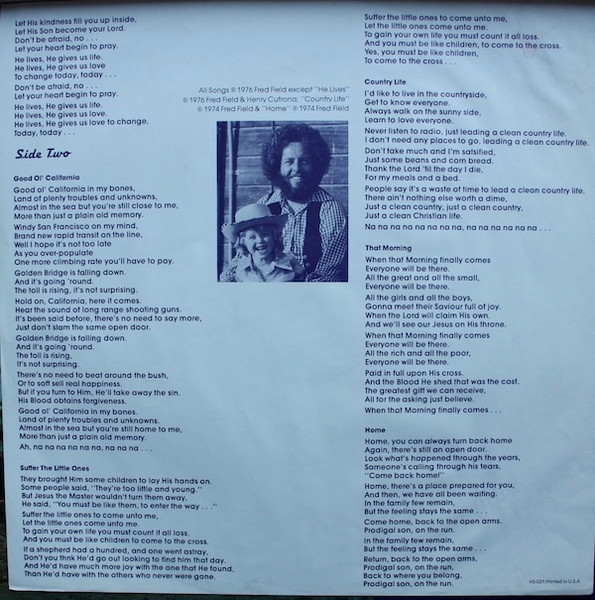 El álbum es realmente un proyecto de Fred Field "and Friends" con la ayuda de los miembros de Love Song, John Mehler y Jay Truax. El álbum también contó con la participación del legendario Al Perkins. Es claramente un proyecto diverso con influencias de armonía vocal de los años 60, instrumentación tradicional del condado y una calidad casi de "alabanza" que recuerda a los primeros álbumes de Maranatha Praise.