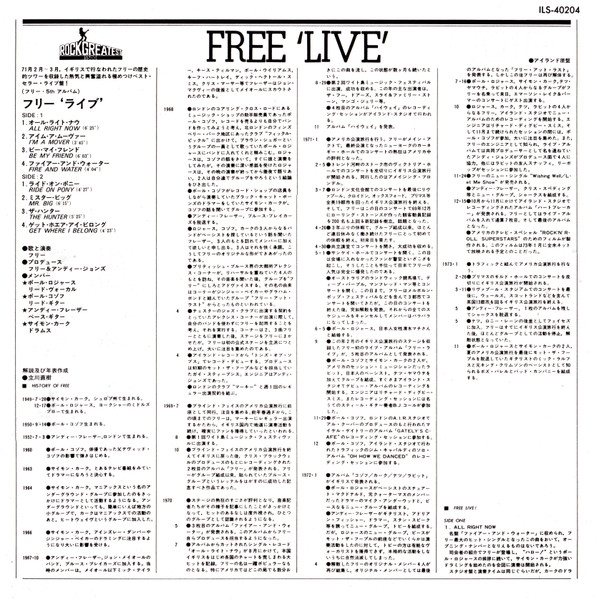 EL LP Comienza con "All Right Now", que dura más de seis minutos. A estos les siguen versiones ruidosas y guiadas por la guitarra de "Be My Friend", "Fire and Water", "Ride on a Pony" y "Mr. Big". La parte en vivo se cierra con uno de los temas más populares de la banda, "The Hunter", que recibe una mayor reacción de la multitud que cualquier otra canción, incluido "All Right Now". Solo la llegada inicial de la banda en el escenario al principio provoca una alegría más fuerte.