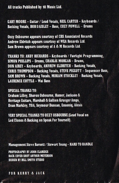 La formación está formada por Gary Moore (voz, guitarra), Neil Carter (teclados, Wild Horses, UFO), Bob Daisley (bajo, Rainbow, Ozzy Osbourne, Uriah Heep...) y Cozy Powell (batería).