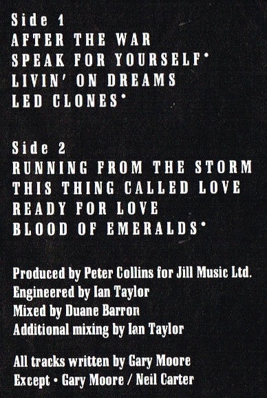 Gary cuenta con el mismo equipo que en "Wild Frontier", pero con una gran diferencia ya que integra a Cozy Powell (Whitesnake, MSG, Black Sabbath, Rainbow...), que será el único disco de Gary Moore en el que participará. ¡Así que sal de la batería programada y bienvenido a Cozy!