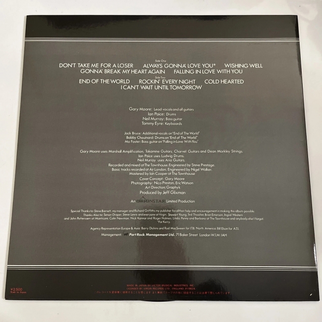 RARA EDICION ORG EDITADA EN JAPON, INSERTO INTERIOR CON LOS TEXTOS EN INGLES Y JAPONES ETC.. Y TAN POSTER DE GARY MOORE POSANDO CON GUITARRA