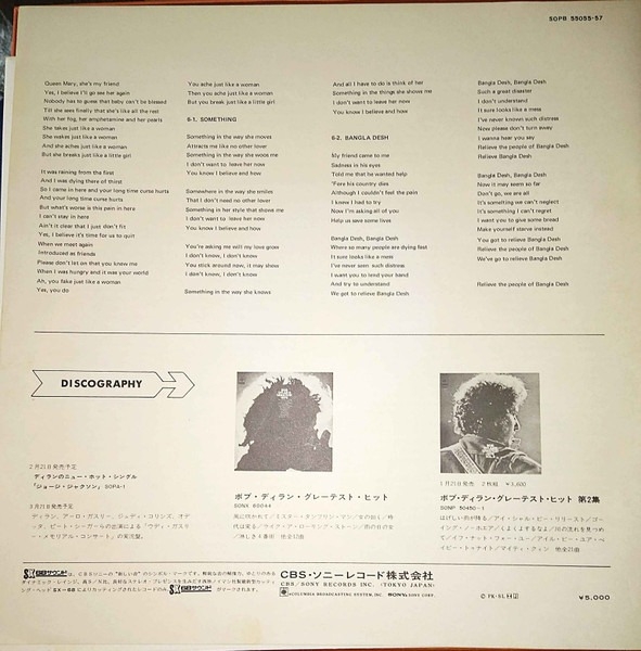 CBS/Sony aparece solo en el folleto de 7 páginas en la contraportada (que también anuncia las recopilaciones de grandes éxitos de Bob Dylan)