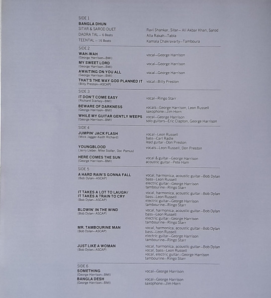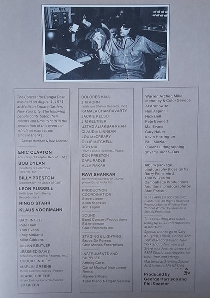 INFINIDAD DE INVITADOS PARTICIPAN EN QUIZA EL MAS MITICO CONCIERTO DE TODOS LOS TIEMPOS..MUSICOS Y AMIGOS DE GEORGE HARRISON COMO: bob dylan,eric clapton,leon russell,ravi shankar,ringo,badfinger,don nix..etc.....Y MUCHOS MAS..