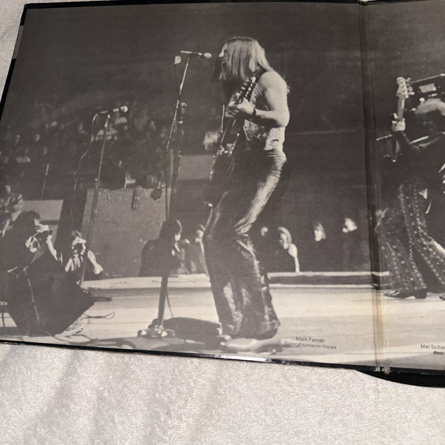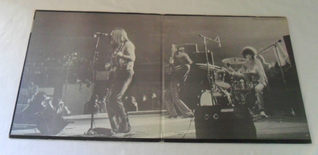 MUY RARA Y COLECCIONABLE 1ª EDIC. ORIG. USA, SUPER GRUESA DOBLE CARPETA CON GRAN FOTO DE LA BANDA TOCANDO en el Madison Square Garden en febrero de 1970, 1º PRENSAJE LABEL CAPITOL COLOR VERDE.