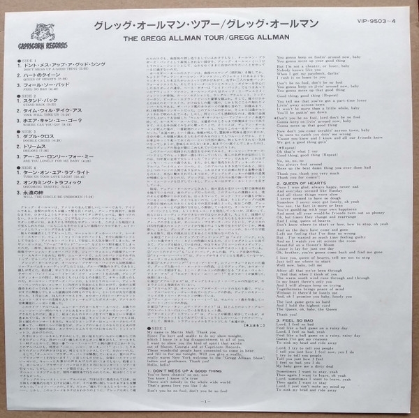 gregg esta al 100% y temas emblematicos como queen of hearts, dreams...te pondran los pelos de punta...en fin, como queda claro...yo tengo este albun en los altares pues es uno de los mejores directos y albunes de la historia