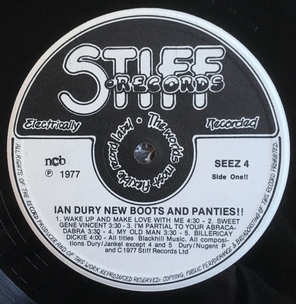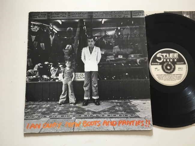Con el apoyo de Charlie Gillet, inició sus primeras grabaciones, que desembocarían en un contrato con Stiff Records, sello clave de los 70 en el Reino Unido. Y en 1977 grabó, junto a su grupo The Blockheads, este New boots and panties!!, un disco ecléctico, que adelantaba la new wave como alternativa al punk. En reediciones posteriores se añadió su clásico "Sex, drugs and rock & roll", que había salido como single en esa época pero no figuraba en el álbum. La canciones de este álbum fueron grabadas recientemente por conocidos artistas británicos e irlandeses como homenaje a Ian Dury, que fallecó en 2000 tras una larga enfermedad.