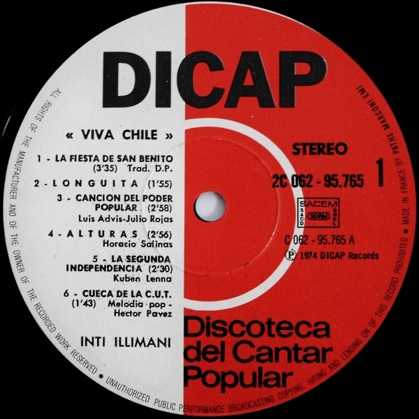 Si mal no recuerdo haber leído, este disco fue el primero lanzado por Inti-Illimani en Italia, pero fue un brevísimo tiempo antes que el Golpe de Estado terminara con los sueños de la Unidad Popular y comenzara el largo exilio que el conjunto viviría en esas tierras.