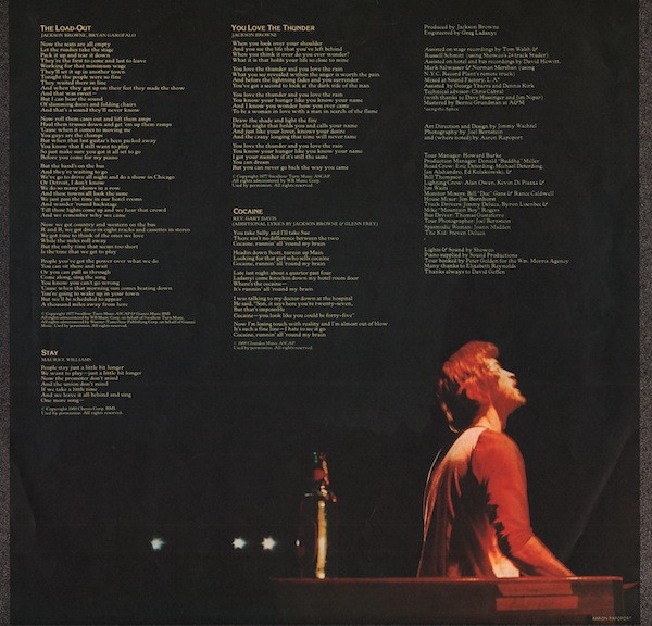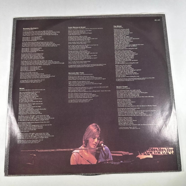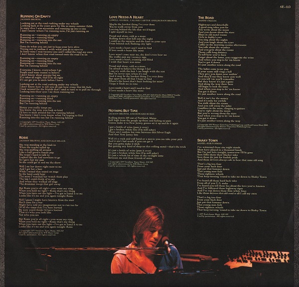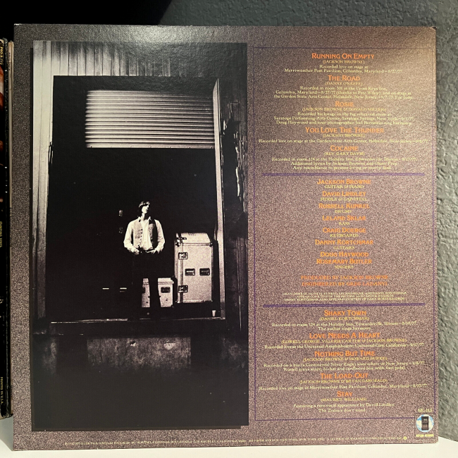 Con canciones temáticas sobre la vida en la carretera, todo el álbum fue grabado en gira, ya sea en vivo en el escenario, o en lugares asociados con giras, como entre bastidores, en autobuses turísticos o en habitaciones de hoteles. Lanzado en 1977, el álbum alcanzó el # 3 en la lista de Billboard Pop Albums en 1978 y se mantuvo en las listas durante 65 semanas. El sencillo de la canción principal, " Running on Empty ", alcanzó el puesto # 11 y el sencillo de seguimiento, " The Load-Out " / "Stay", alcanzó el puesto 20 en la lista Billboard Pop Singles.