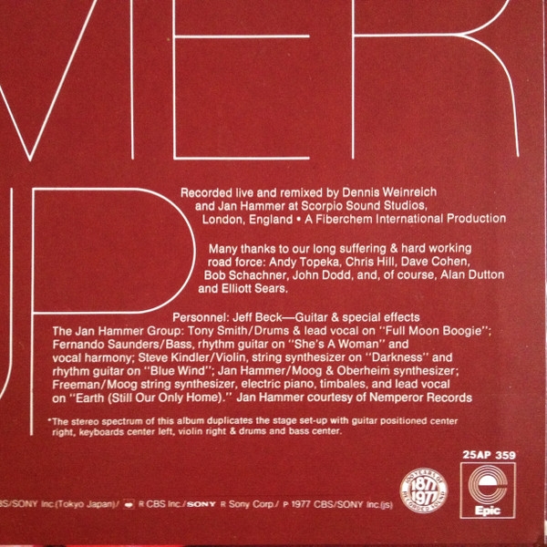 SIEMPRE UN DISCO MUY BUSCADO POR TODOS LOS FANS Y SEGUIDORES DEL GRAN JEFF BECK, AQUI JUNTO A SU AMIGO JAN HAMMER